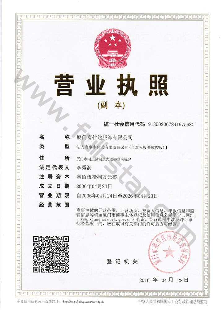 您好!廈門富仕達服飾有限公司歡迎您!