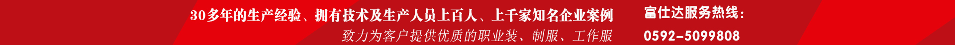廈門富仕達服飾有限公司為專業工作服廠服職業裝制服32年!公司集設計,生產加工,售后為一體的專業職業裝公司,歡迎同業來料加工。電話:0592-5099808。富仕達職業裝已成為多家知名連鎖企業,跨國公司及上市企業等專業服裝外包商。